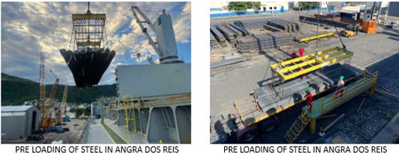 HELDS LOADINGS OF STEEL PRODUCTS, STEEL PIPES, PIG IRON -> VERY IMPORTANT TO HIRE DRAFT SURVEY FOR PIG IRON LOADINGS -> IN RIO, DUE TO DRAFT RESTRICTION