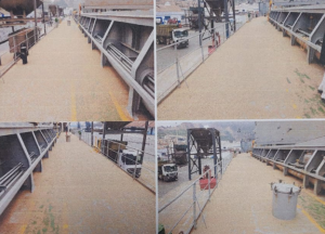 UPON FURTHER INVESTIGATION, WE IDENTIFIED A CONSIDERABLE CARGO SPILLAGE, DUE TO TECHNICAL CONDITION OF THE SHORE GRAB & SHORE HOPPERS, AND NEGLIGENCE FROM SHORE OPERATORS – AS CAN BE SEEN IN THE PHOTOS BELOW: